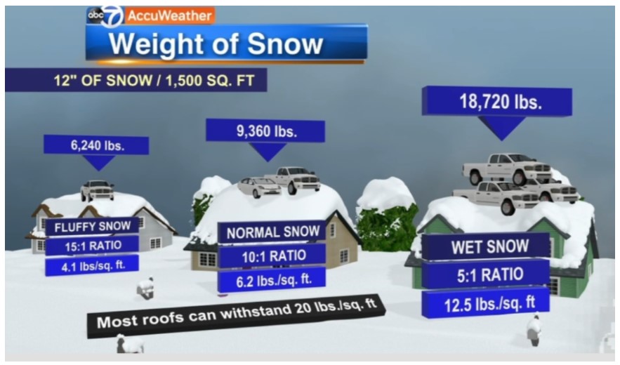 Πέρσι με αφορμή τις μεγάλες χιονοπτώσεις στο Τέξας η ιδιωτική Μετεωρολογική Εταιρεία Accuweather έδωσε στη δημοσιότητα ένα κατατοπιστικό βίντεο για τα φορτία χιονιού πάνω από τα σπίτια χρησιμοποιώντας τα πρότυπα που ισχύουν διεθνώς. Στην Αμερική πολλά σπίτια είναι κατασκευασμένα από ξύλο, δέχονται πολύ μεγαλύτερα φορτία χιονιού και η πληροφορία αυτή ήταν σημαντική , ειδικά για τους κατοίκους του Νότου όπου βρίσκεται το Τέξας, καθώς οι άνθρωπο δεν ήταν συνηθισμένοι στο πολύ χιόνι.