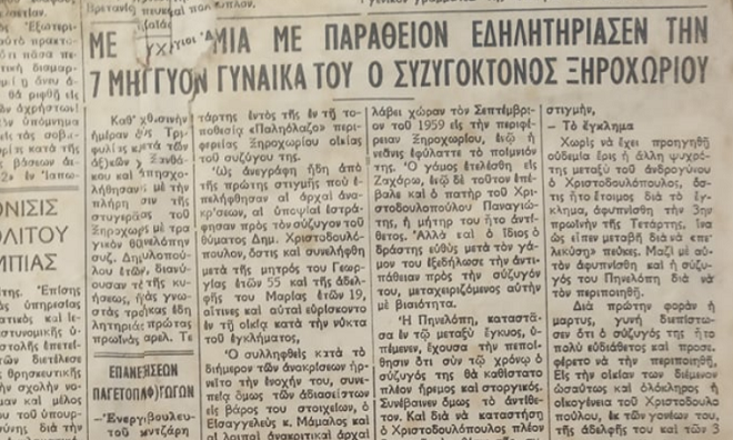 Ήταν Σεπτέμβριος του 1959, και η νεαρή βρισκόταν στη στάνη και πρόσεχε τα ζώα. Εκεί, ο 22χρονος Δημήτρης Χ., της επιτέθηκε και την βίασε.