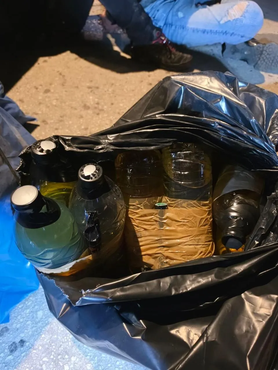 Από τους αστυνομικούς κατασχέθηκαν 30 ναυτικές φωτοβολίδες και περίπου 100 αυτοσχέδιοι εμπρηστικοι-εκρηκτικοι μηχανισμοί αποτελούμενοι από φιάλες του 1,5 λίτρου που περιείχαν εύφλεκτο υγρό.