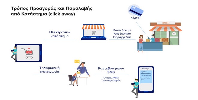 Οι πολίτες θα πρέπει να ακολουθήσουν τα παρακάτω βήματα για να κάνουν τα ψώνια τους με τη μέθοδο Click Away: