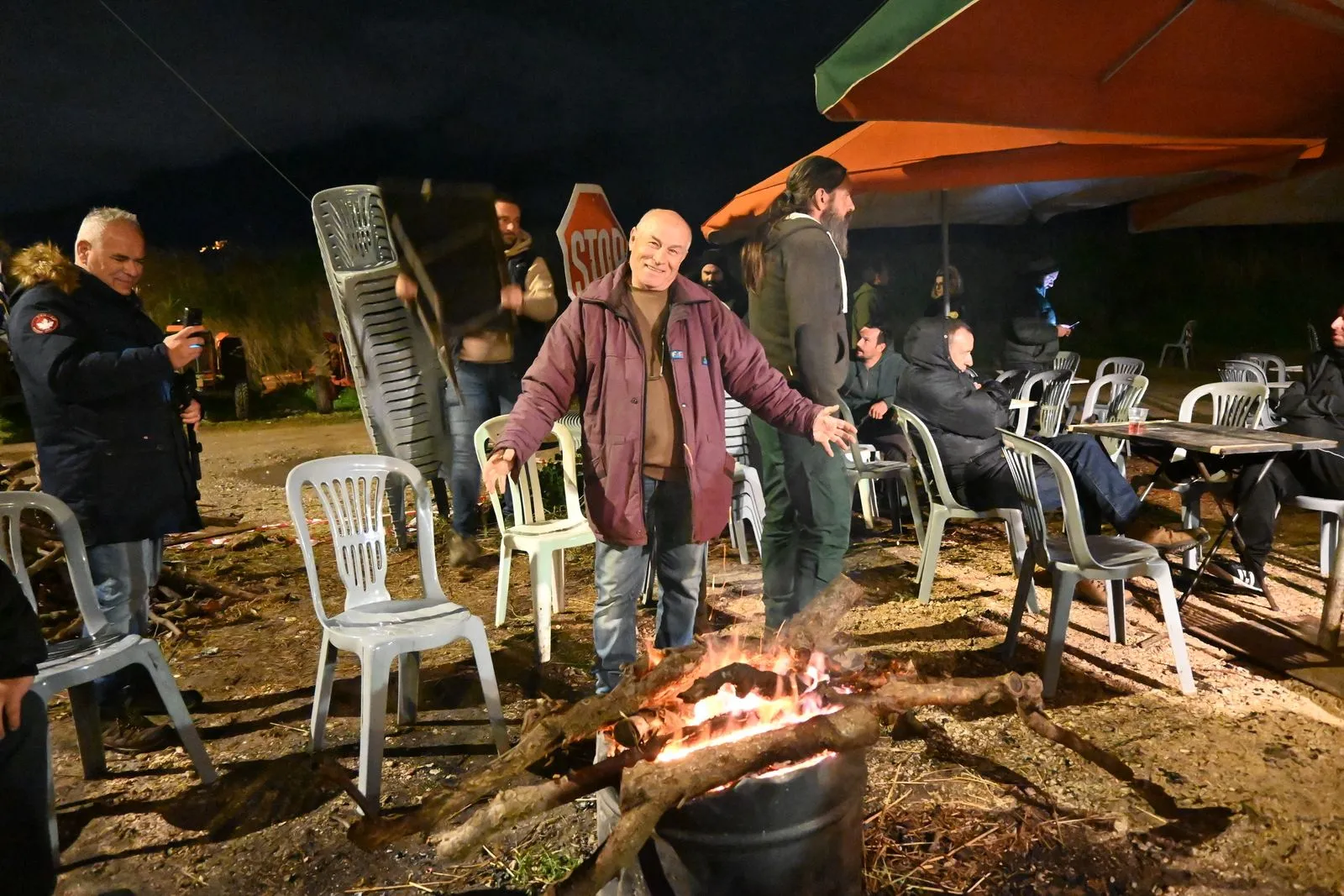 Με μουσική και μεζέδες, οι αγρότες παρέμειναν στο μπλόκο, έχοντας τοποθετήσει τα τρακτέρ στην άκρη του δρόμου, χωρίς να εμποδίζεται η κυκλοφορία των οχημάτων.