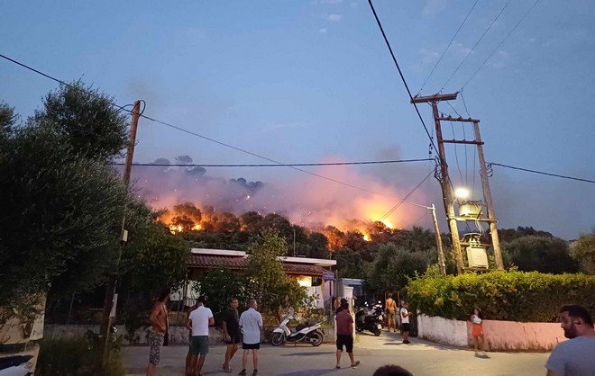 Νωρίτερα, η φωτιά έφτασε σχετικά κοντά στο χωριό, ενώ εκδόθηκε «112» για τους κατοίκους ώστε να βρίσκονται σε ετοιμότητα.