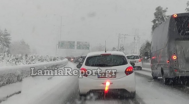Έντονη χιονόπτωση στην Αθηνών Λαμίας