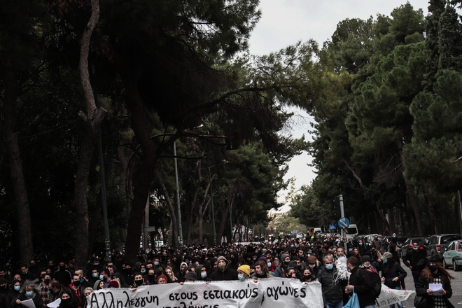 Πορεία διαμαρτυρίας πραγματοποίησαν φοιτητές που διαμαρτύρονται για την αστυνόμευση σε πανεπιστημιακές σχολές και εστίες.