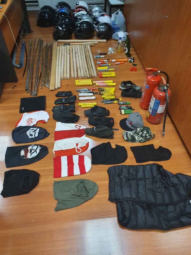 Πλήθος από πολεμοφόδια βρέθηκαν στην κατοχή των συλληφθέντων οπαδών Ολυμπιακού και Παναθηναϊκού που συνεπλάκησαν το απόγευμα του Σαββάτου στου Ζωγράφου.