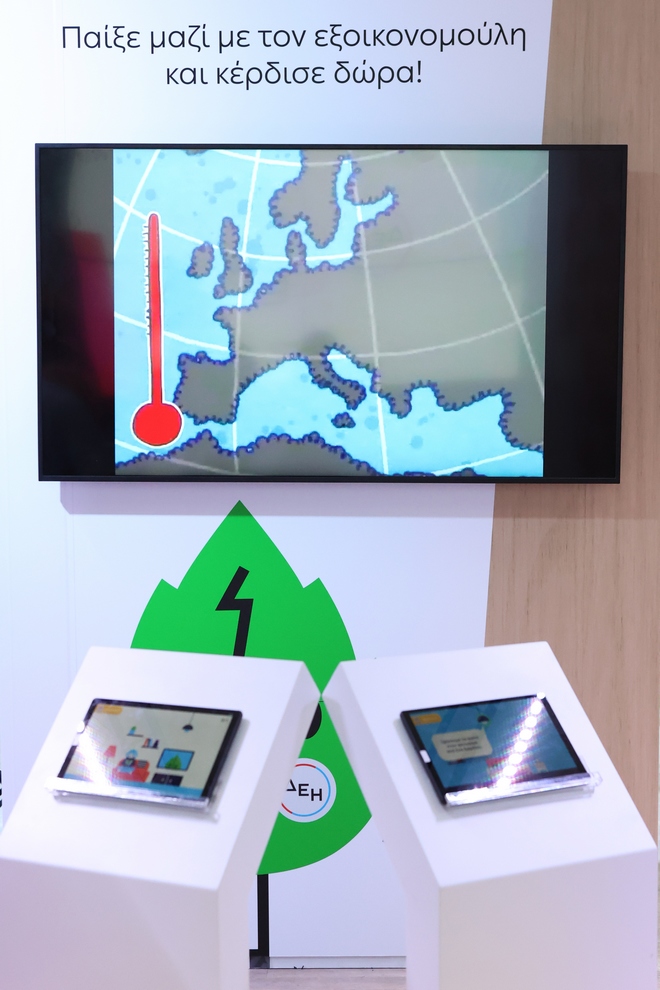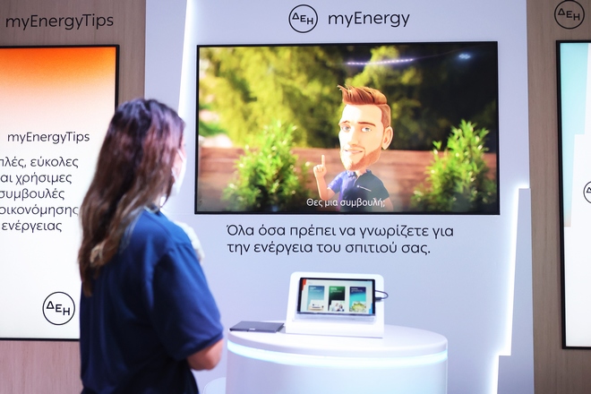 Στον ρόλο του «ξεναγού» σε αυτόν τον κόσμο, είναι ο ΔΕΗ my Energy Coach, που υποδέχεται τους επισκέπτες υπό μορφή avatar, απαντώντας σε πραγματικό χρόνο σε ερωτήσεις και απορίες, ως εξειδικευμένος σύμβουλος ενέργειας. Με γνώμονα το βιώσιμο αύριο και την πράσινη ενέργεια, η ΔΕΗ παρουσιάζει όλα τα προϊόντα και τις λύσεις για τη διαχείριση ενέργειας στο σπίτι, με μία απλή βόλτα στο περίπτερό της. Το πρόγραμμα ΔΕΗ my Energy που είναι διαθέσιμο και online, παρέχει έξυπνες συμβουλές και tips για τη μείωση κατανάλωσης του ρεύματος μέσα από τη χρήση των οικιακών συσκευών, με τη βοήθεια επεξηγηματικών βίντεο, ταινιών, ειδικής ξενάγησης σε tablet, αλλά και με την εφαρμογή «Εξοικονομούλης» που εξηγεί με απλά λόγια στους μικρούς μας φίλους τι μπορούν να κάνουν τα παιδιά για να εξοικονομούν ενέργεια!