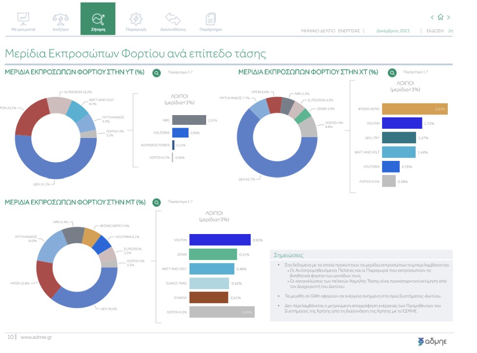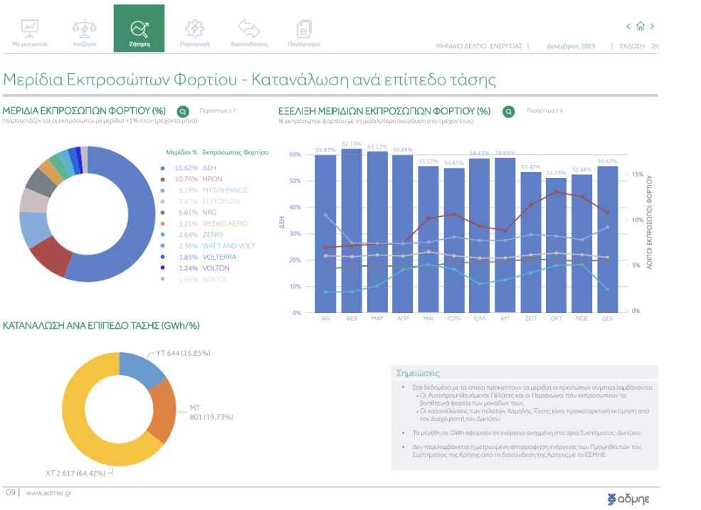 Το μερίδιο προμήθειας της ΔΕΗ, σύμφωνα με τα στοιχεία του ΑΔΜΗΕ, υποχώρησε από 36% σε 34,7%, ενώ ανοδικά κινήθηκαν τα μερίδα των ΗΡΩΝ και Μυτιληναίος.