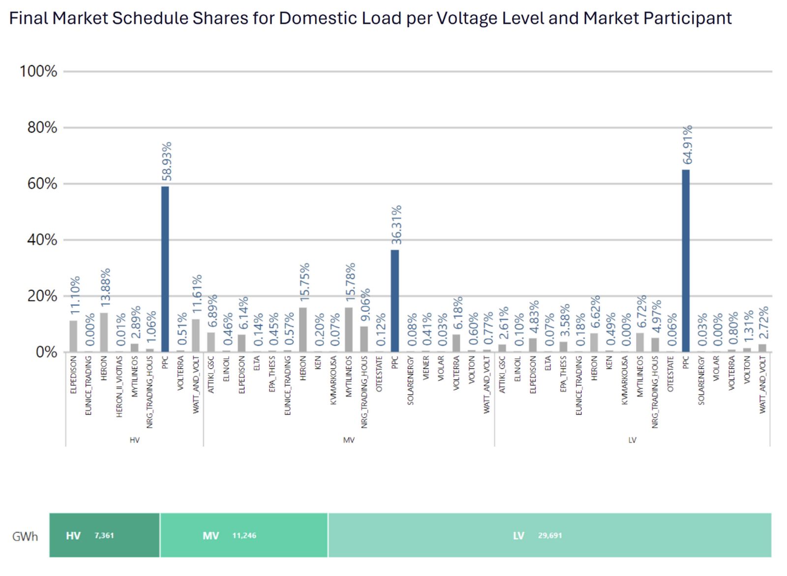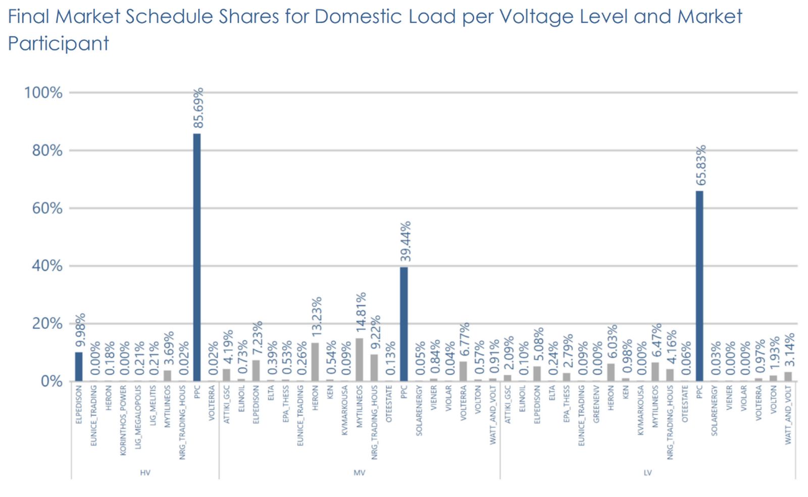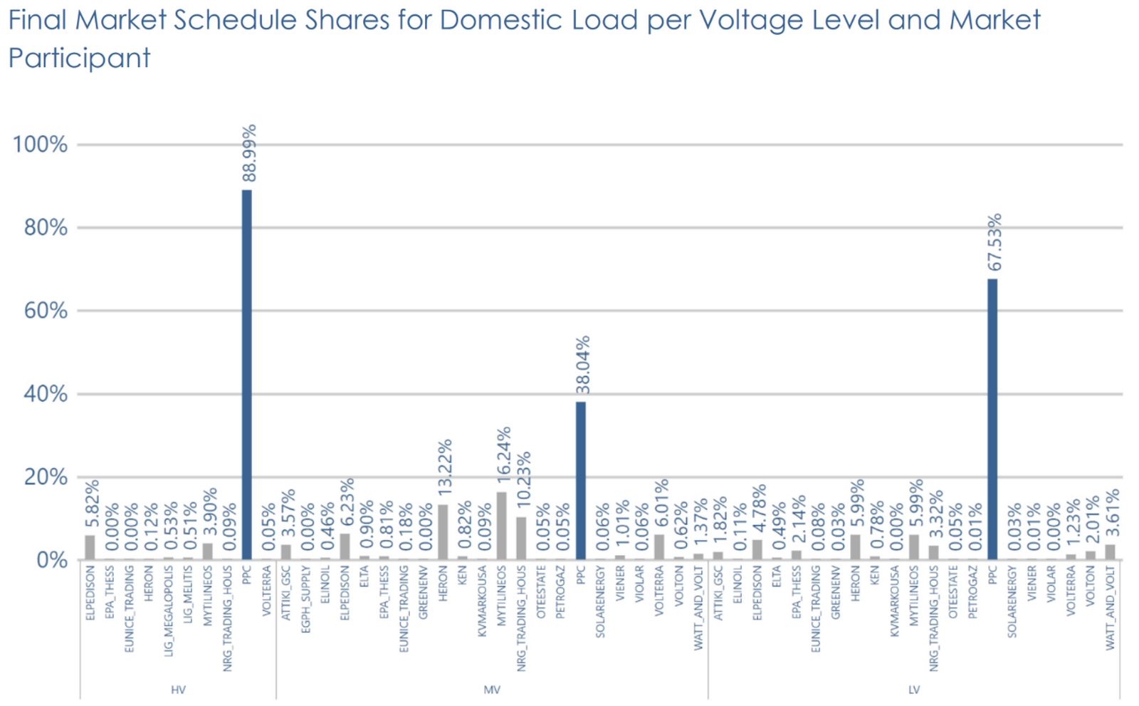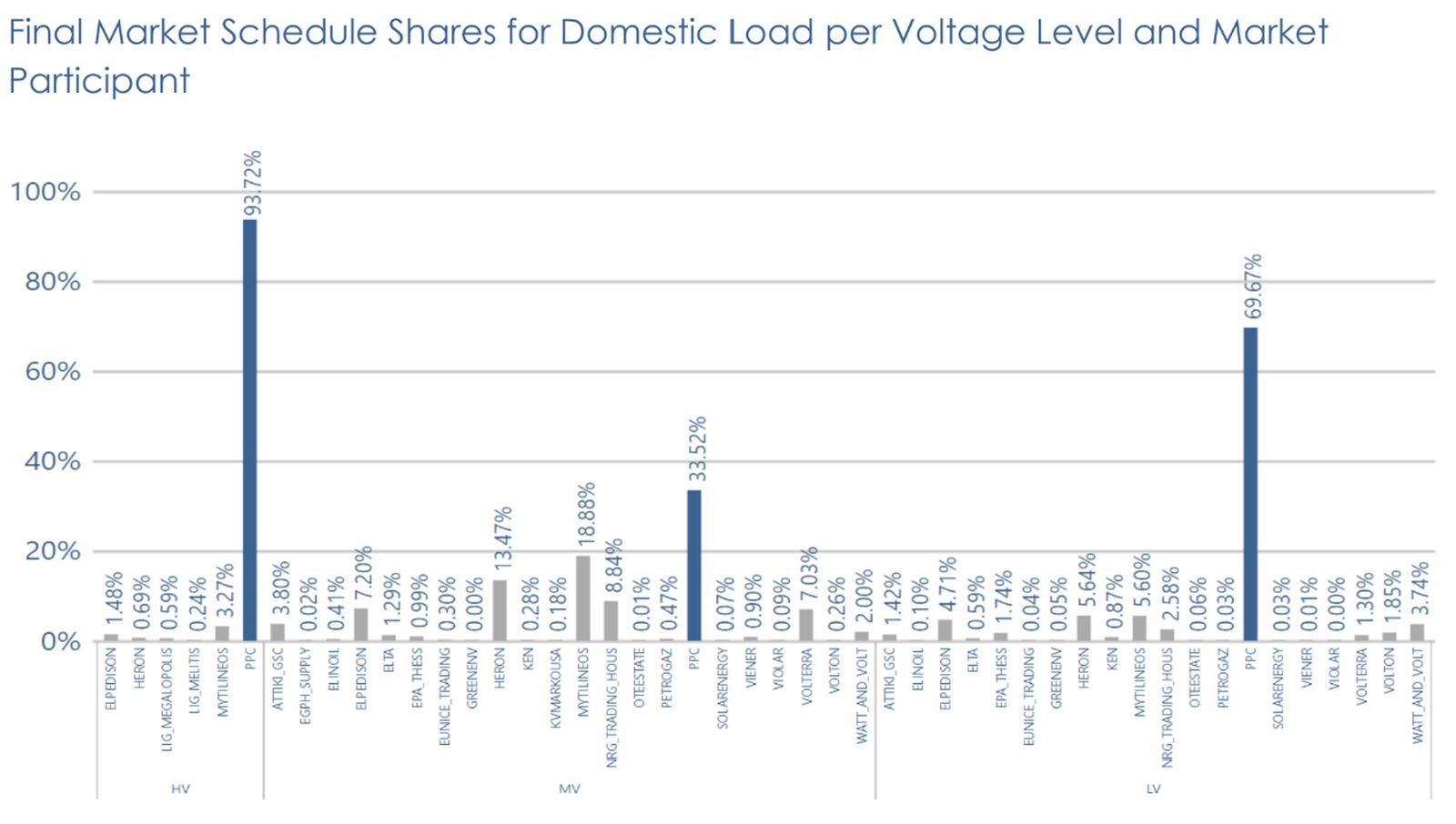 Να σημειωθεί, όπως προκύπτει και από τη σύγκριση των στοιχείων με βάση τα μερίδια ανά Τάση, ότι οι βασικές αλλαγές, τόσο ως προς την ΔΕΗ όσο και ως προς τους εναλλακτικούς παρόχους μεταξύ τους, οφείλονται σε αλλαγές που υπήρξαν στην Υψηλή Τάση.