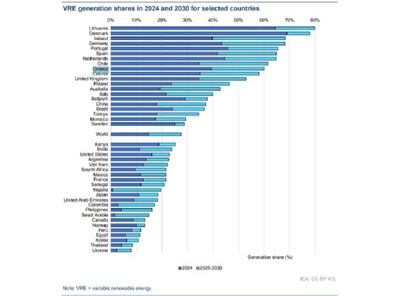 Όσον αφορά δε ευρύτερα την παραγωγή από ανανεώσιμες πηγές, συμπεριλαμβανομένων φωτοβολταϊκών και αιολικών, αλλά και άλλων πηγών, το μερίδιο για το εγχώριο σύστημα προβλέπεται να φτάσει στο 60% έως το 2030, ενώ πέρυσι διαμορφώθηκε λίγο χαμηλότερα από το 40%, σύμφωνα πάντα με τον Διεθνή Οργανισμό Ενέργειας.