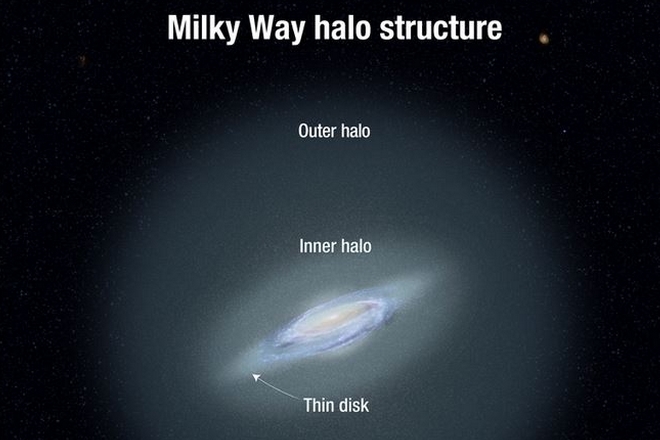 Οι αστρονόμοι τόνισαν ότι η περιβάλλουσα άλως που αποτελείται από διάφορα διάσπαρτα άστρα, είναι πολύ μεγαλύτερη από τον κυρίως δίσκο του γαλαξία μας, ο οποίος δεν ξεπερνά σε διάμετρο τα 100.000 έτη φωτός. Το ηλιακό μας σύστημα με τη Γη βρίσκεται σε έναν από τους σπειροειδείς βραχίονες του δίσκου. Στη μέση του δίσκου βρίσκεται ένα κεντρικό ‘εξόγκωμα’ και γύρω από αυτό είναι η άλως που περιέχει τα αρχαιότερα άστρα του γαλαξία μας και η οποία εκτείνεται σε απόσταση εκατοντάδων χιλιάδων χιλιομέτρων προς κάθε κατεύθυνση.