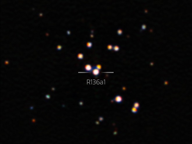 Οι αστρονόμοι κατάφεραν να τραβήξουν την πιο καθαρή μέχρι σήμερα φωτογραφία του κολοσσιαίου άστρου R136a1, του μεγαλύτερου άστρου που έχει βρεθεί μέχρι σήμερα στο σύμπαν. Το άστρο είχε παρατηρηθεί στο παρελθόν με το διαστημικό τηλεσκόπιο «Χαμπλ» και άλλα επίγεια τηλεσκόπια, αλλά ποτέ με αρκετή καθαρότητα. Η νέα παρατήρηση πέτυχε ανάλυση τρεις φορές καλύτερη του Hubble και ελαφρώς καλύτερη του νέου μεγάλου διαστημικού τηλεσκοπίου James Webb.