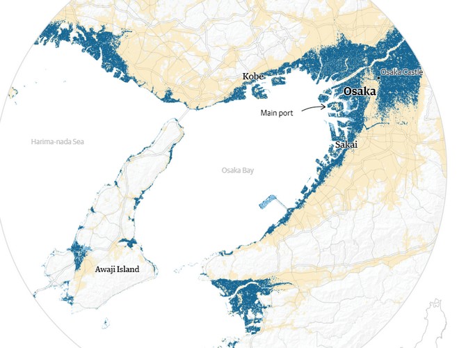 Η Ιαπωνία βρίσκεται ήδη αντιμέτωπη με την απειλή που προκαλούν οι πλημμύρες από την κλιματική αλλαγή. Η Οσάκα, η εμπορική καρδιά της χώρας, η οποία έχει σχεδόν το ίδιο ΑΕΠ με αυτό της Ολλανδίας, θα εξαφανιστεί κάτω από το νερό, με την τοπική οικονομία να ταλανίζεται και σχεδόν το 1/3 των 19 εκατ. κατοίκων της ευρύτερης περιοχής να αντιμετωπίζουν πρόβλημα.
