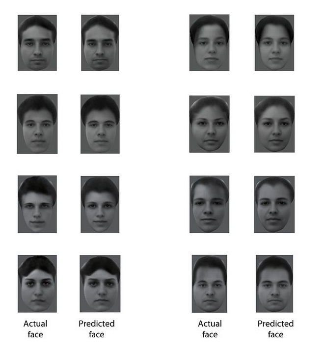 Τα πειράματα έδειξαν ότι ο εγκέφαλος βασίζεται σε μαθηματικούς υπολογισμούς όπως αυτούς που χρησιμοποιεί ένας αλγόριθμος, αναλύοντας σε αριθμούς 50 διαφορετικά χαρακτηριστικά του προσώπου (σχήμα, απόσταση ανάμεσα στα μάτια, μήκος μύτης, υφή δέρματος κ.α.).
