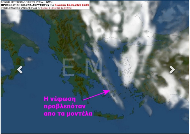 Μια πολύ ωραία δορυφορική εικόνα από το Αιγαίο και ένα βίντεο με την αεροπορική διαδρομή στην Κάρπαθο μου έστειλε ένας φίλος το μεσημέρι της Κυριακής και μου έθεσε το ερώτημα να απαντήσω αν η γραμμή των νεφών που παρουσιάζεται είναι contrails (ίχνη συμπύκνωσης) ή οφείλεται σε πιθανούς …ψεκασμούς από την πρωινή πτήση για Κάρπαθο. Του απάντησα οτι δεν είναι ούτε το ένα ούτε το άλλο!