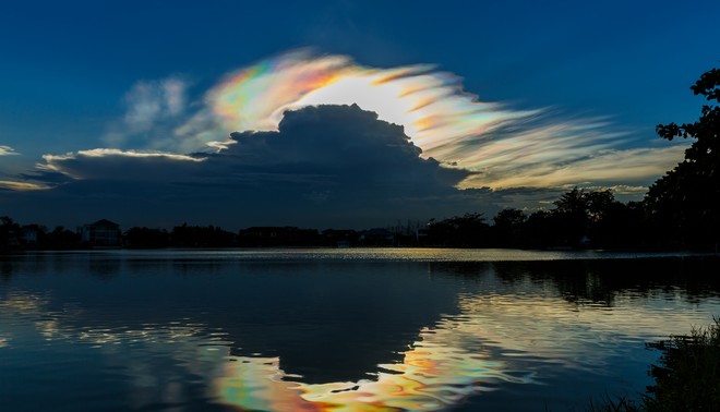 Το μετεωρολογικό φαινόμενο που προκάλεσε αυτόν πανέμορφο σχηματισμό της παραπάνω φωτογραφίας δεν οφείλεται στη διάθλαση του φωτός από τις υδροσταγόνες που μπορεί να περιέχονται στα νέφη, που τότε θα παρήγαγαν το ουράνιο τόξο, αλλά στη παράθλαση του φωτός και ονομάζεται ιριδισμός.