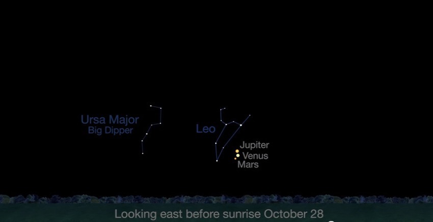 Η νέα εβδομάδα που ξεκινά θα δώσει την ευκαιρία στους λάτρεις των αστρονομικών φαινομένων να απολαύσουν ένα σπάνιο φαινόμενο στο πρωινό ουρανό. Ο πλανήτης Δίας θα πλησιάσει την Αφροδίτη το πρωί της Δευτέρας, με τον Άρη να βρίσκεται πολύ κοντά επίσης και τους τρεις πλανήτες να πλησιάζουν όλο και περισσότερο καθώς περνά η εβδομάδα.