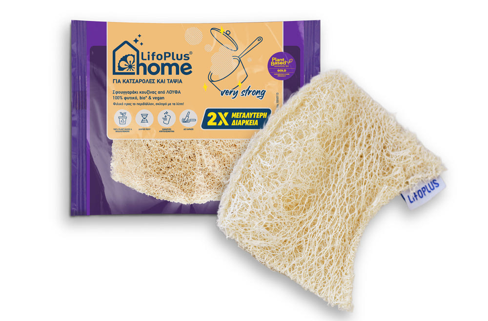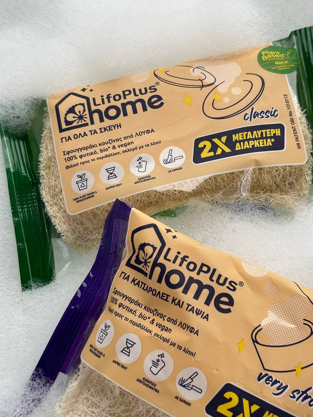 Το LifoPlus Home είναι το πρώτο vegan σφουγγάρι πιάτων στην ελληνική αγορά, φτιαγμένο από 100% φυτική λούφα, που φέρνει μια νέα εποχή στην καθημερινή φροντίδα της κουζίνας μας.
