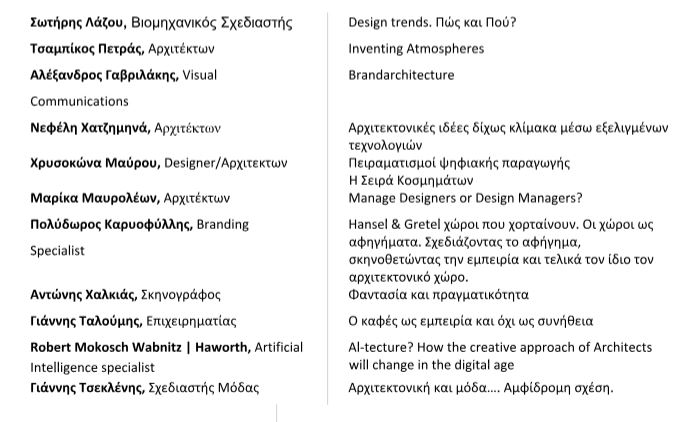 Ημέρα ξεχωριστή για την Α&Μ, μιας και φέτος εκτός από τα στελέχη και τους συνεργάτες της εταιρείας προσήλθαν φίλοι, πελάτες και διακεκριμένοι ομιλητές, όχι μόνο από το χώρο του Design και της Αρχιτεκτονικής αλλά και από το χώρο του θεάτρου, του κινηματογράφου και της Επιχειρηματικότητας, που μοιράστηκαν τις γνώσεις και τις εμπειρίες τους σχετικά με νέες πρακτικές στον σύγχρονο σχεδιασμό, στο επιχειρείν και την επικοινωνία.