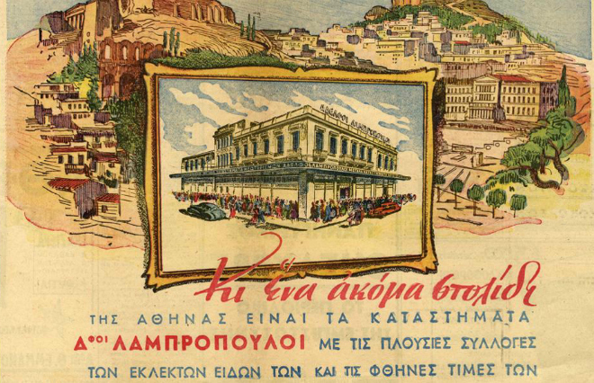 Μπορεί οι περισσότεροι, οι άνω των 40 τουλάχιστον, να έχουμε συνδυάσει την Αφοί Λαμπρόπουλοι ως το αντίπαλον δέος του Μινιόν ή στην καλύτερη ως μέρος της συνδυαστικής χριστουγεννιάτικης βόλτας στο κέντρο της Αθήνας όπου θα φεύγαμε με το δώρο του Αϊ Βασίλη όμως η Αφοι Λαμπρόπουλοι έχουν για τους περισσότερους μία άγνωστη πολύ πιο μεγάλη ιστορία και ένα τεράστιο αποτύπωμα στην οικονομία του τόπου. Ένα αποτύπωμα που φτάνει τα 100 χρόνια και ανοίγεται πέρα από τα πολυκαταστήματα στην παραγωγή ( όπως της Κολυνός κάνοντας την στην συνείδηση αρκετών ελληνική), στην μουσική βιομηχανία καθώς ήταν οι δημιουργοί της Columbia ακόμη και τον αθλητισμό. Όλα αυτά συγκεντρώθηκαν και έγινα το λεύκωμα «Αφοί Λαμπρόπουλοι 1901 – 1999» από το Φιλανθρωπικό Ίδρυμα Δημητρίου και Μπλανς Λαμπροπούλου.