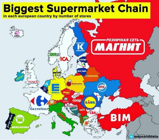 Εάν υπάρχει μία αγορά όπου βασιλεύει ο ανταγωνισμός αυτή δεν είναι άλλη από αυτή των σούπερ μάρκετ. Όπως φαίνεται και στον χάρτη πιο κάτω αν και υπάρχουν ισχυρές αλυσίδες που αρκετές έχουν παρουσία σε αρκετές χώρες της Ευρώπης ελάχιστες είναι αυτές οι οποίες καταφέρνουν να χτυπήσουν πρωτιά σε αριθμό καταστημάτων σε πάνω από μία αγορά.