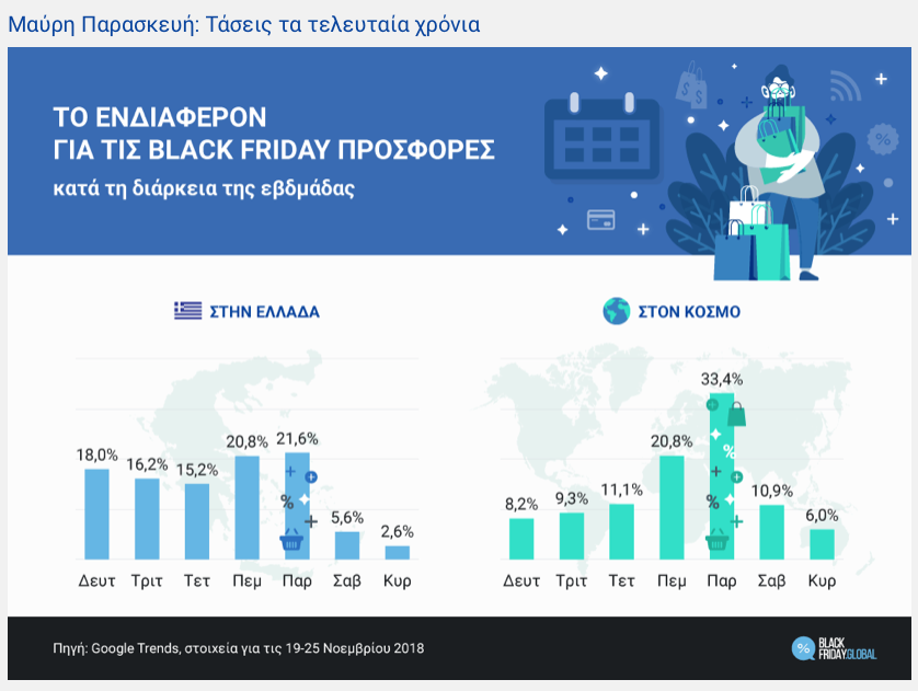 Το παραστατικό διάγραμμα που δείχνει τον διαφορετικό τρόπο που λειτουργεί η Black Friday στην Ελλάδα σε σχέση με τον υπόλοιπο κόσμο.