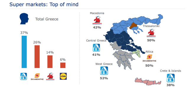 Πόσο διαφορετικά απάντησαν καταναλωτές από περιφέρειες της Ελλάδας σχετικά με το ποιο σούπερ μάρκετ τους έρχεται πρώτα στο μυαλό