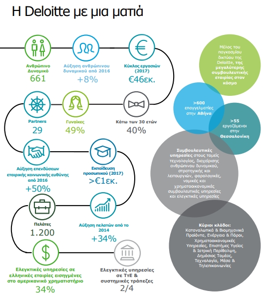 Στόχος της εταιρείας είναι να αξιοποιήσει τις δεξιότητες και τις προοπτικές νέων ταλέντων στην Ελλάδα, δημιουργώντας μέσω συνεχούς εκπαίδευσης την επόμενη γενιά συμβούλων για το παρόν και το μέλλον της Deloitte. Πλέον των 35 νέων επαγγελματιών διαφορετικών ειδικοτήτων στους τομείς των συμβουλευτικών, τεχνολογικών, χρηματοοικονομικών, φορολογικών, υπηρεσιών διαχείρισης εταιρικού κινδύνου και ελεγκτικών υπηρεσιών εργάζονται ήδη πάνω στην υλοποίηση σημαντικών έργων, ενώ η διαδικασία αξιολόγησης και προσλήψεων συνεχίζεται, με στόχο οι νέες θέσεις εργασίας να φτάσουν τις 200 ως το 2020.