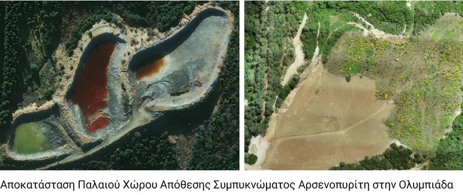 Σε αυτό το πλαίσιο, η Ελληνικός Χρυσός ολοκλήρωσε το έργο περιβαλλοντικής αποκατάστασης του παλαιού χώρου απόθεσης αρσενοπυριτών στην Ολυμπιάδα, ένα έργο απομάκρυνσης, καθαρισμού και αποκατάστασης με στόχο την πλήρη επανένταξη της περιοχής στο φυσικό περιβάλλον.