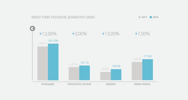 Πιο αναλυτικά τα στοιχεία που προκύπτουν από την επίδοση των ξενοδοχείων το πρώτο τετράμηνο του 2018 και σε σχέση με το 2017, έχουν ως εξής: