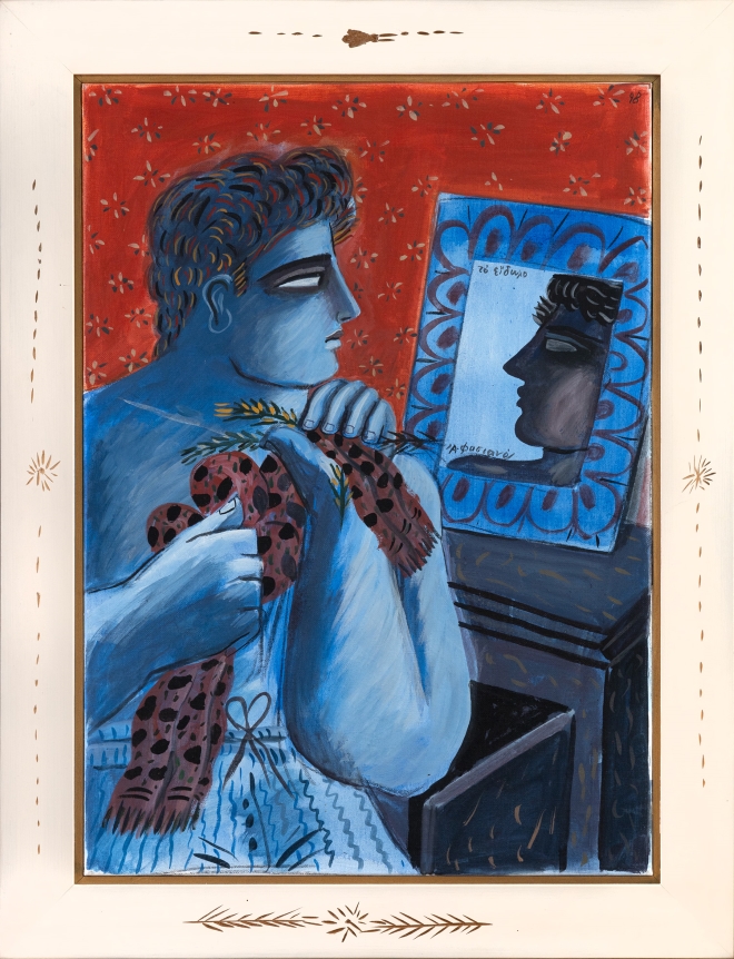 Το εμβληματικό, μεγάλων διαστάσεων έργο του Κωνσταντίνου Παρθένη “Σύνθεση από την ελληνική ιστορία” ξεχωρίζει ανάμεσα στα έργα. Με την υψηλότερη τιμή εκτίμησης €250.000-350.000 από όλα τα έργα της δημοπρασίας, τοποθετείται χρονικά τη δεκαετία του 1960 και αντανακλά τα κλασικά στοιχεία του ώριμου ύφους του Κωνσταντίνου Παρθένη με την χαρακτηριστική ανάλαφρη και αέρινη τεχνική του να κατέχει πρωταγωνιστικό ρόλο.
