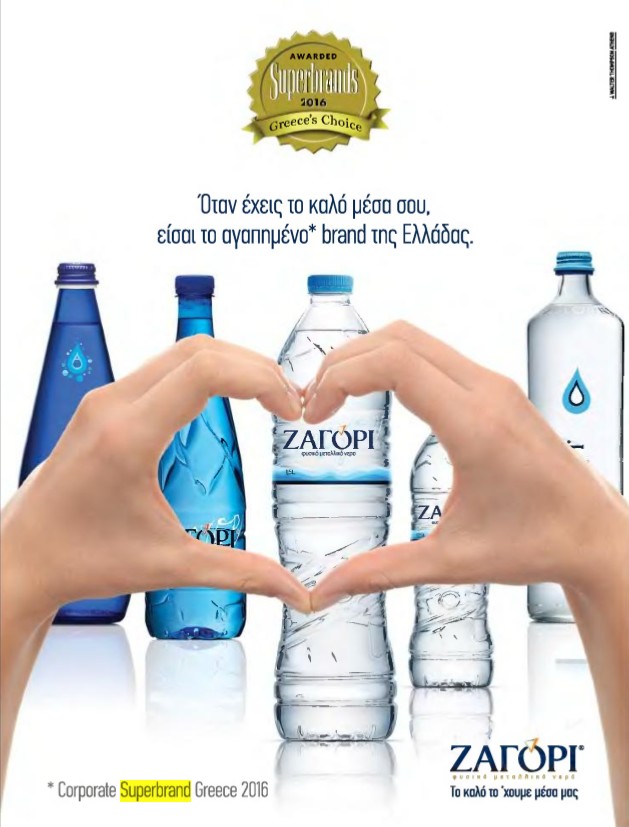 Η κορυφαία τιμητική διάκριση, μεταξύ 1.500 υποψήφιων Εταιρικών Επωνυμιών, με την επιλογή του νερού Ζαγόρι ως "Κορυφαία Εταιρική Επωνυμία στην Ελλάδα" για το 2016