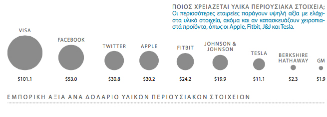 Η εταιρεία του 21ου αιώνα θα είναι ολοένα και περισσότερο ένα εγχείρηµα που θα βασίζεται σε µια ιδέα· θα δραστηριοποιείται όχι µόνο στον κλάδο της πληροφορικής, αλλά και στα µέσα επικοινωνίας, τις χρηµατοπιστωτικές υπηρεσίες, τη φαρµακοβιοµηχανία και άλλους κλάδους που καταναλώνουν µεγάλο όγκο διανοητικών ικανοτήτων. Η McKinsey διαπιστώνει ότι, ενώ «οι κλάδοι έντασης ιδεών και περιορισµένων περιουσιακών στοιχείων» παρήγαγαν το 17% των κερδών των δυτικών εταιρειών το 1999, σήµερα παράγουν το 31%. Οι χαµένοι αυτής της µεταβολής είναι οι κλάδοι έντασης κεφαλαίου και εργασίας, όπως οι κατασκευές, οι µεταφορές, οι υπηρεσίες κοινής ωφέλειας και οι υπηρεσίες εξόρυξης. Αυτό δεν σηµαίνει ότι οι εταιρείες αυτών των κλάδων είναι καταδικασµένες. Όπως δείχνει το παράδειγµα της Tesla, ενδεχοµένως να µπορέσουν να ακµάσουν, αρκεί να επανεφεύρουν τον εαυτό τους.