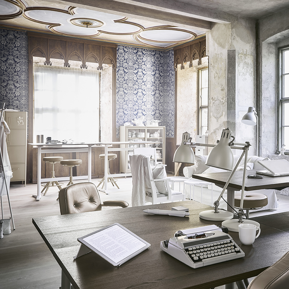 H εγκεκριμένη για επαγγελματική χρήση σειρά γραφείων και ασφαλούς αποθήκευσης IDÅSEN, με παραδοσιακό σχέδιο και βιομηχανικές επιρροές, προσφέρει έναν ευέλικτο και διασκεδαστικό τρόπο εργασίας. Επιπλέον, οι περιστρεφόμενες καρέκλες ALEFJÄLL, από δέρμα grain και με ρυθμιζόμενη κλίση και ύψος, τα σκαμπό σχεδιαστηρίου TROLLBERGET, που προσφέρουν ελευθερία κίνησης, καθώς και τα γραφεία και οι μονάδες αποθήκευσης BEKANT, έρχονται να συμβάλλουν σε έναν νέο και πιο υγιεινό τρόπο εργασίας.