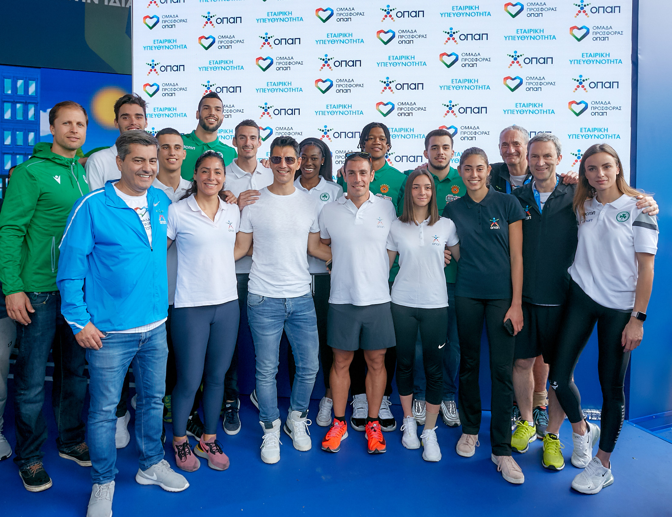 Η διοίκηση του ΟΠΑΠ με τον Σάκη Ρουβά, τους αθλητές της ΚΑΕ ΠΑΝΑΘΗΝΑΙΚΟΣ ΟΠΑΠ, τους αθλητές του ΠΑΝΑΘΗΝΑΙΚΟΥ Α.Ο. και τους OPAP Champions