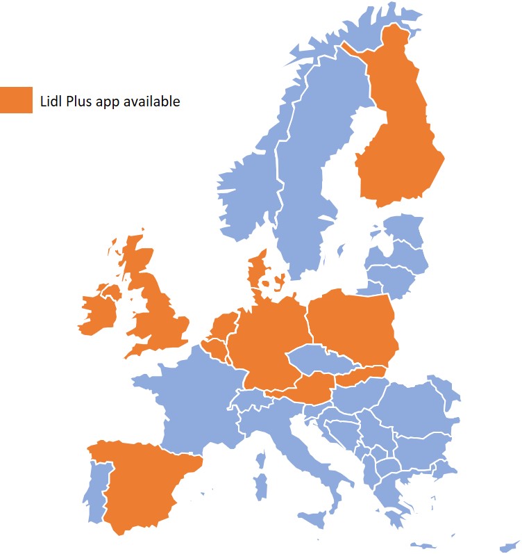 Το Lidl Plus ξεκίνησε στις αρχές του 2019 από την Γερμανία και ήδη είναι ενεργο σε 12 χώρες μεταξύ των οποίων, Βρετανία, Ιρλανδία Αυστρία, Δανία, Ολλανδία, Ισπανία και Βέλγιο. Στις περισσότερες αγορές καταφέρνει να λανσαριστεί από τις πρώτες ημέρες στην κορυφή των download των νέων εφαρμογών. Είναι χαρακτηριστικό ότι στο Βέλγιο στις 10 πρώτες ημέρες είχε καταφέρει να εγγράψει περισσότερους από 300.000 χρήστες.