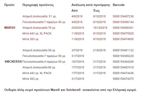 Έχοντας ως βασικές αρχές την ΠΟΙΟΤΗΤΑ και την ΥΠΕΥΘΥΝΟΤΗΤΑ, η Mars Hellas ζητεί συγγνώμη για την όποια αναστάτωση επιφέρει η εξέλιξη αυτή και διαβεβαιώνει το καταναλωτικό κοινό ότι μεριμνά πάντοτε για την άριστη ποιότητα και ασφάλεια των προϊόντων της».