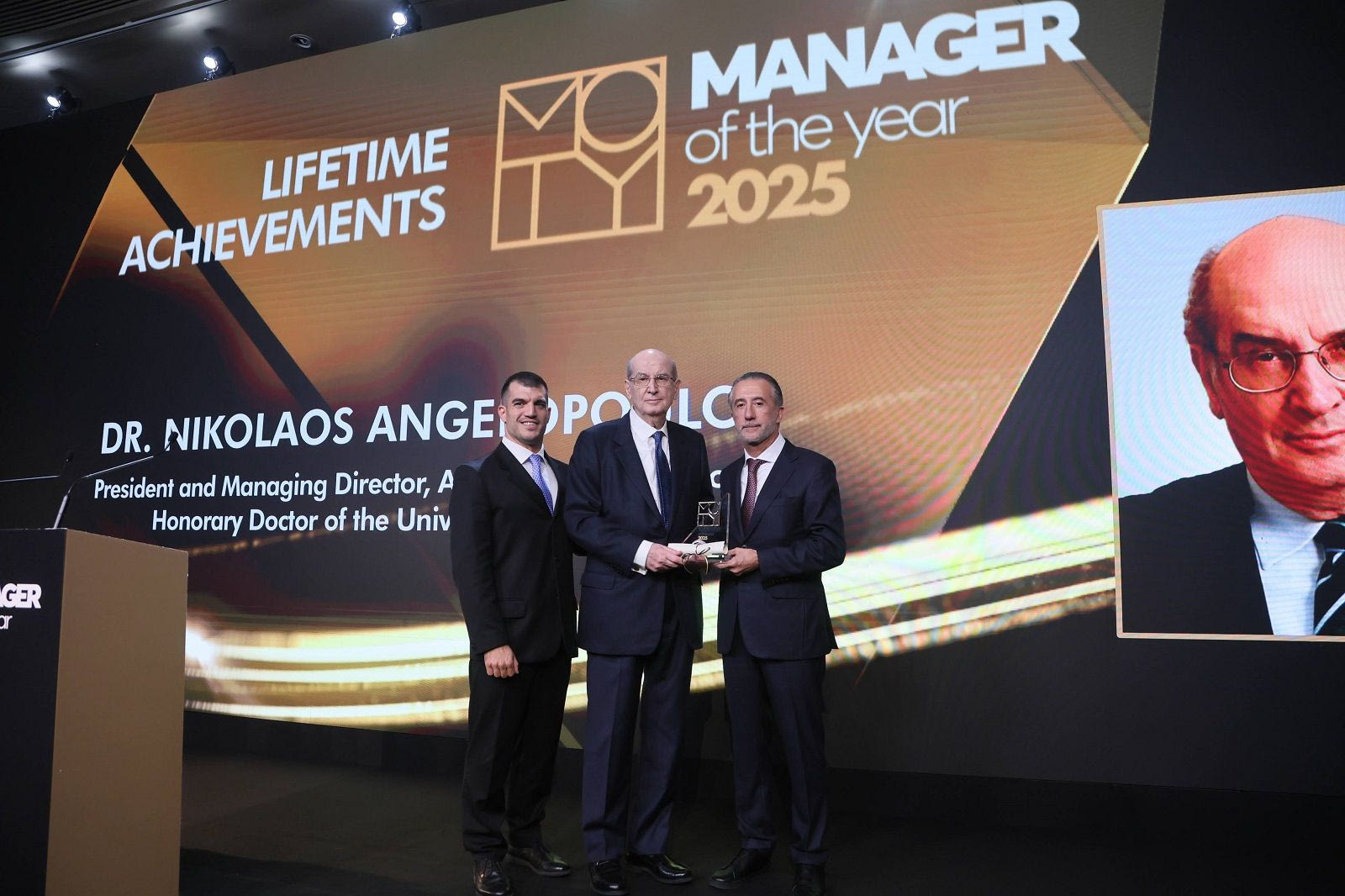 Πριν από την απονομή του κορυφαίου τίτλου της βραδιάς, το κοινό χειροκρότησε τρεις ηγετικές προσωπικότητες που ξεχώρισαν σε εμβληματικές κατηγορίες του θεσμού. Το βραβείο Lifetime Achievements Manager of the Year 2025 απονεμήθηκε στον Δρ Νικόλαο Αγγελόπουλο, αναγνωρίζοντας μια πορεία με διαχρονικό αποτύπωμα στη διοίκηση. Ο Δημήτρης Ζορπάς, Chief Executive Officer ZORBAS GROUP, αναδείχθηκε Cyprus Manager of the Year 2025, για τη συμβολή του στην ανάπτυξη και την εξωστρέφεια της κυπριακής επιχειρηματικής σκηνής, σε μία ιστορική στιγμή για τον θεσμό καθώς ήταν η πρώτη φορά που απονεμήθηκε το εν λόγω βραβείο. Επίσης, η Πέγκυ Αντωνάκου, General Manager Southern Europe, CEO Google Hellas, τιμήθηκε ως International Manager of the Year 2025, για τη διεθνή της διαδρομή και τη δυναμική παρουσία της σε κορυφαίους οργανισμούς.