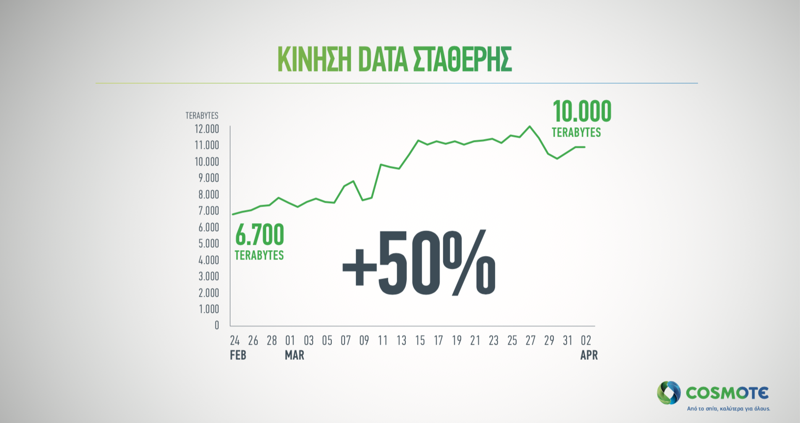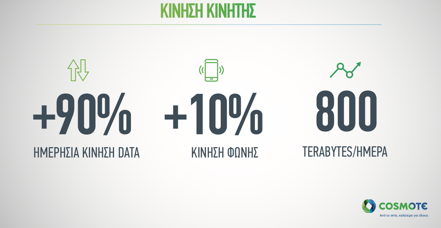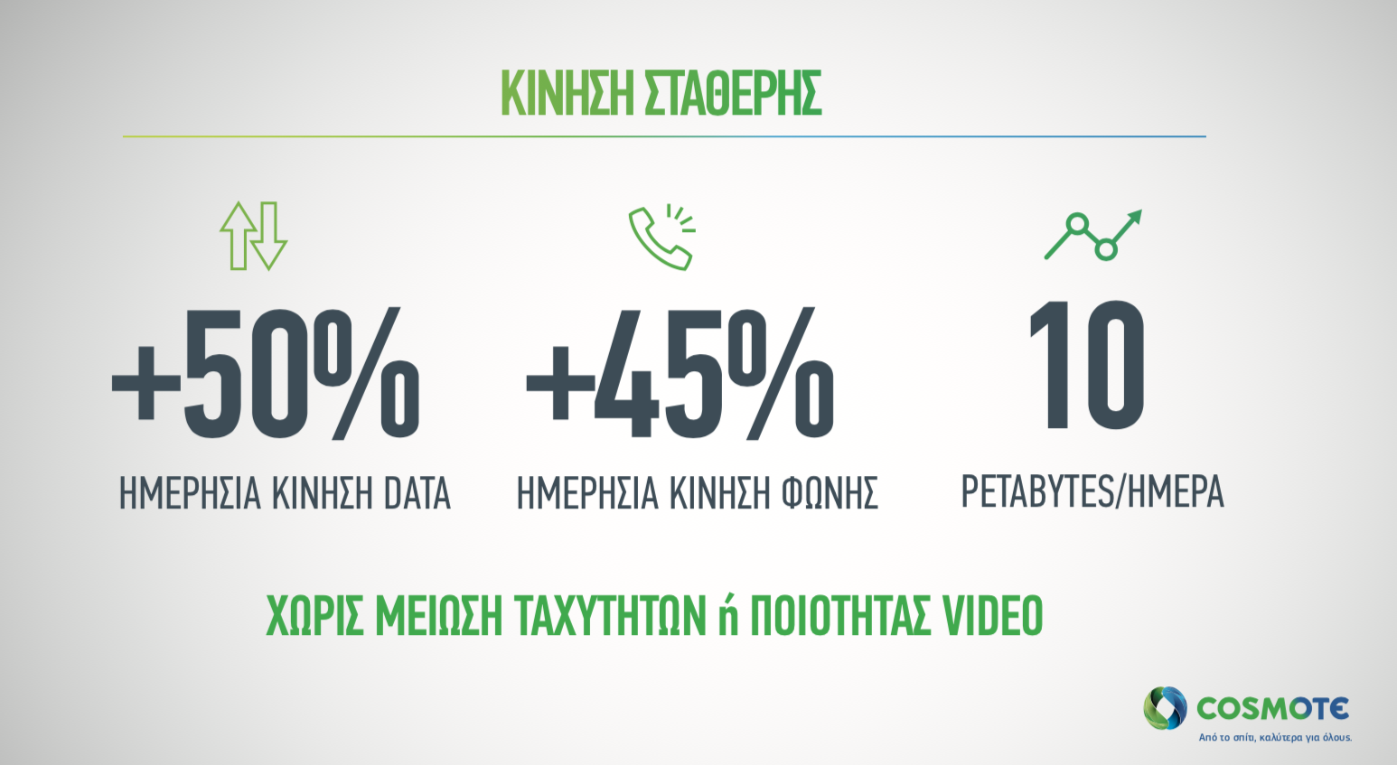 - Μετά το lockdown η ημερήσια κίνηση data αυξήθηκε περίπου 50%, σε σχέση με προηγούμενους μήνες.