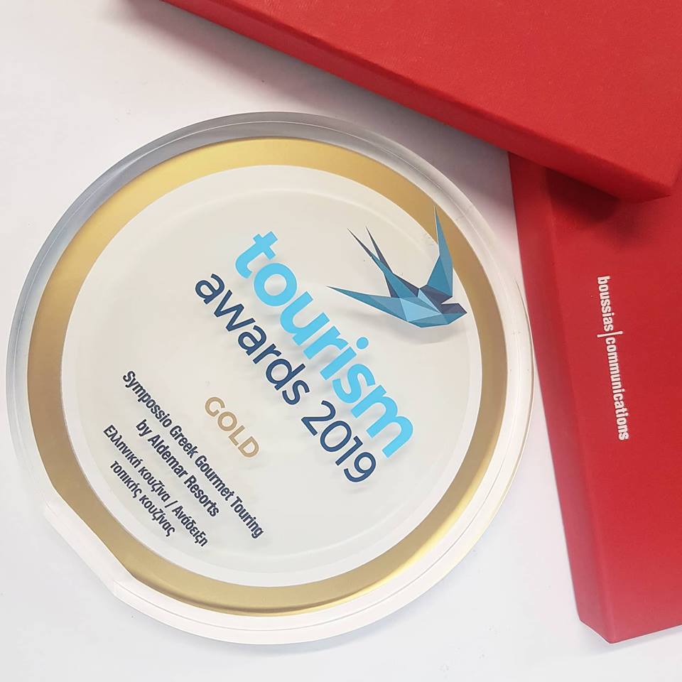 Χρυσό για τρίτη χρονιά απέσπασε και το Sympossio Greek Gourmet Touring, στην κατηγορία Ελληνική κουζίνα / Ανάδειξη τοπικής κουζίνας. Μία πρωτοβουλία του Ομίλου Aldemar Resorts που ταξιδεύει ανά τον κόσμο και γνωρίζει στους συμμετέχοντες, με τον πιο βιωματικό τρόπο, την Ελλάδα μέσα από τις αυθεντικές της γεύσεις, έχοντας συνοδοιπόρους στο ταξίδι αυτό φορείς καθώς και Έλληνες παραγωγούς. Γιορτάζοντας τα 10 χρόνια ζωής του Sympossio, η διοργάνωση των Tourism Awards και η Boussias Communications, επέλεξαν να το εντάξουν στη Επίσημη Βιβλιοθήκη των καλύτερων πρακτικών στην Ελλάδα σε αναγνώριση της σημαντικής συμβολής του στην προώθηση της Ελλάδας στο εξωτερικό.