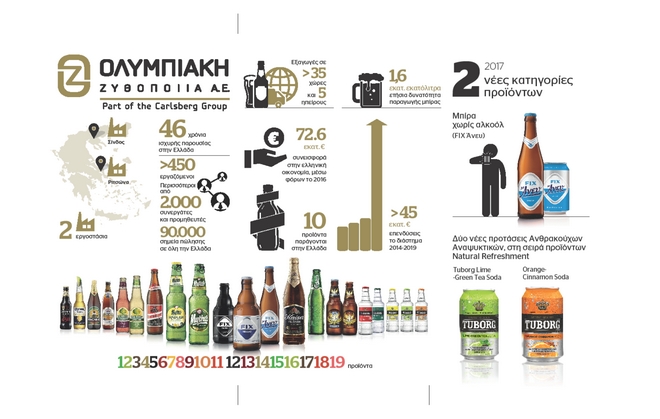 Σε μια δύσκολη καμπή για την Ελληνική οικονομία, η Ολυμπιακή Ζυθοποιία υλοποιεί ένα από τα μεγαλύτερα επενδυτικά πλάνα της χώρας, αξίας 45 εκατ. ευρώ, επιβεβαιώνοντας τη δέσμευση και εμπιστοσύνη της στην ελληνική αγορά. Επιπλέον, στηρίζει εμπράκτως τα φορολογικά έσοδα με δεκάδες εκατομμύρια ευρώ ετησίως και την αγορά εργασίας με πάνω από 450 υπαλλήλους και 2.000 συνεργάτες και προμηθευτές.