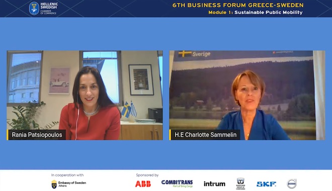 Με ιδιαίτερη επιτυχία πραγματοποιήθηκε τη Δευτέρα, 7 Δεκεμβρίου 2020, διαδικτυακά το πρώτο από τα τρία μέρη του 6ου Επιχειρηματικού Φόρουμ Ελλάδας-Σουηδίας «Η Μετάβαση της Ελλάδας προς ένα Βιώσιμο Μέλλον» με θέμα τις Βιώσιμες Δημόσιες Μεταφορές, που διοργανώνει το Ελληνο-Σουηδικό Εμπορικό Επιμελητήριο σε συνεργασία με την Πρεσβεία της Σουηδίας στην Ελλάδα.