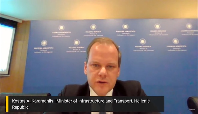 Κεντρικός ομιλητής ήταν ο Υπουργός Υποδομών και Μεταφορών, κ. Κώστας Αχ. Καραμανλής ο οποίος αναφέρθηκε στο ολοκληρωμένο σχέδιο της κυβέρνησης για την ανανέωση του στόλου των οχημάτων μαζικής μεταφοράς και τη δημιουργία υποδομών για εύκολη και προσβάσιμη φόρτιση εισάγοντας το απαραίτητο ρυθμιστικό και αδειοδοτικό πλαίσιο προαναγγέλλοντας παράλληλα την έναρξη διαγωνισμού για νέα λεωφορεία στην Αθήνα και τη Θεσσαλονίκη, πολλά από τα οποία θα είναι ηλεκτρικά.