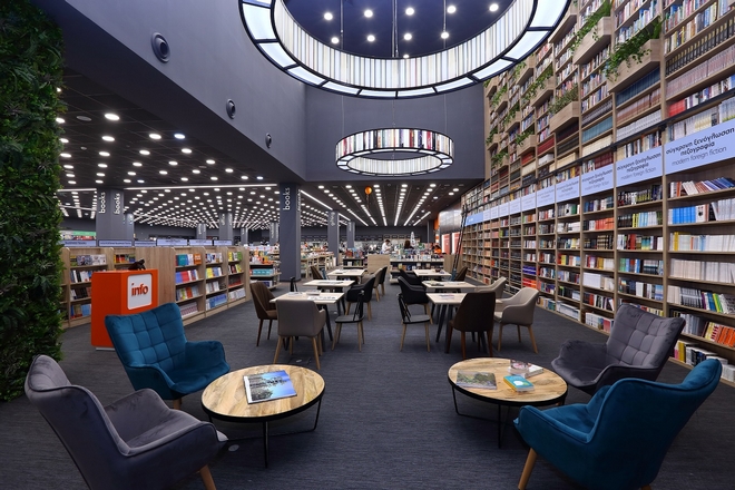 Στη δομή του νέου καταστήματος προεξέχοντα ρόλο έχουν τα προϊόντα πολιτισμού και ψυχαγωγίας. Στο χώρο δεσπόζει μια επιβλητική βιβλιοθήκη ύψους 9 μέτρων, μοναδική σε εμπορικό κατάστημα όχι μόνο στην Κύπρο αλλά και σε ευρωπαϊκό επίπεδο, η οποία φιλοξενεί πάνω από 15.000 επιλεγμένους τίτλους και συνολικά περισσότερα από 150 χιλιάδες βιβλία. Την παρουσία της βιβλιοθήκης συμπληρώνει το αναγνωστήριο (readinglounge) που προσκαλεί τον επισκέπτη να διαβάσει, να μελετήσει και να εξερευνήσει μια επιμελημένη, όσο και εντυπωσιακή, συλλογή βιβλίων.