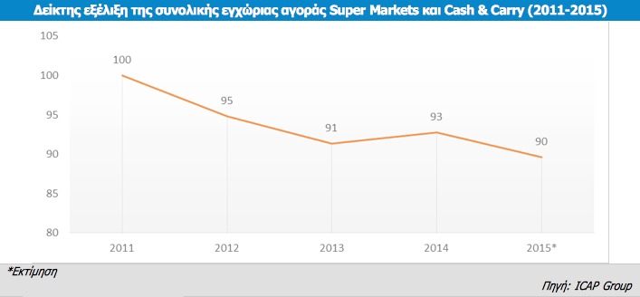 Ο έντονος ανταγωνισμός που παρατηρείται μεταξύ των επιχειρήσεων, σε συνδυασμό με τις δυσμενείς οικονομικές συνθήκες που κυριάρχησαν στη χώρα τα τελευταία χρόνια, επηρέασαν τη συνολική ζήτηση και οδήγησαν τις εταιρείες στην αναζήτηση νέων στρατηγικών ανάπτυξης. Οι κυριότερες επιπτώσεις της κρίσης αποτυπώνονται στην αλλαγή της καταναλωτικής συμπεριφοράς και τη μείωση της αξίας του μέσου “καλαθιού” αγορών. To παραπάνω συμπέρασμα προκύπτει από την κλαδική μελέτη της ICAP για τoν κλάδο των super market.