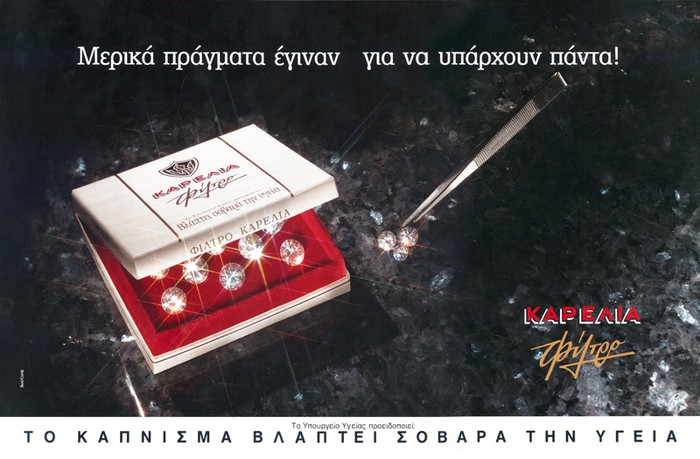 Για την ιστορία η εταιρεία KARELIA, το όνομα της οποίας είναι άρρηκτα συνδεδεμένο με το χώρο του καπνού, ιδρύθηκε στην Καλαμάτα το 1888, από τους Γιώργο και ο Στάθη Καρέλια. Ήταν η οικογενειακή επιχείρηση που έδωσε στην περιοχή προστιθέμενη αξία , αφού πέρα από τις ελιές για τις οποίες ήταν ήδη γνωστή η Καλαμάτα, απέκτησε φήμη και για την παρασκευή προϊόντων καπνού. Από την πώληση καπνού σε χάρτινα σακουλάκια στην τοπική αγορά μετεξελίχθηκε σταδιακά στη μεγαλύτερη καπνοβιομηχανία και στον πρώτο εξαγωγέα τσιγάρων της Ελλάδας. Σήμερα διατηρεί τρεις θυγατρικές σε Αγγλία, Βουλγαρία και Τουρκία, έχει ξεπεράσει σε μερίδιο αγοράς την Imperial και έχει αποκτήσει πιστούς οπαδούς σε 70 χώρες του εξωτερικού.