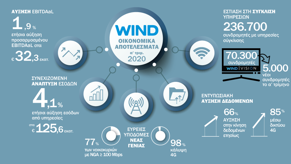 «Παρά τις προκλήσεις που παρουσιάστηκαν από την πανδημία του COVID-19, αλλά και την εισαγωγή νέων τελών τερματισμού κινητής τηλεφωνίας τον Φεβρουάριο, η συνολική αύξηση εσόδων από υπηρεσίες της WIND παρέμεινε ισχυρή το πρώτο τρίμηνο, καθώς οι θετικές τάσεις που αναφέρθηκαν το 2019 συνεχίστηκαν και τους πρώτους δύο μήνες του 2020.