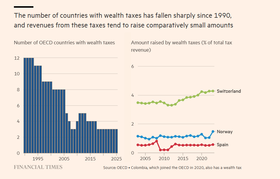 Η ιστορική αναδρομή στους φόρους περιουσίας, μας παρέχει ένα χαρακτηριστικό παράδειγμα. Στα μέσα της δεκαετίας του 1980, περίπου οι μισές χώρες του ΟΟΣΑ επέβαλαν ετήσιο φόρο καθαρής περιουσίας στους πλουσιότερους κατοίκους τους. Σήμερα, στην Ευρώπη μόνο η Ισπανία, η Νορβηγία και η Ελβετία τους διατηρούν – και συγκεντρώνουν σχετικά μικρά ποσά.