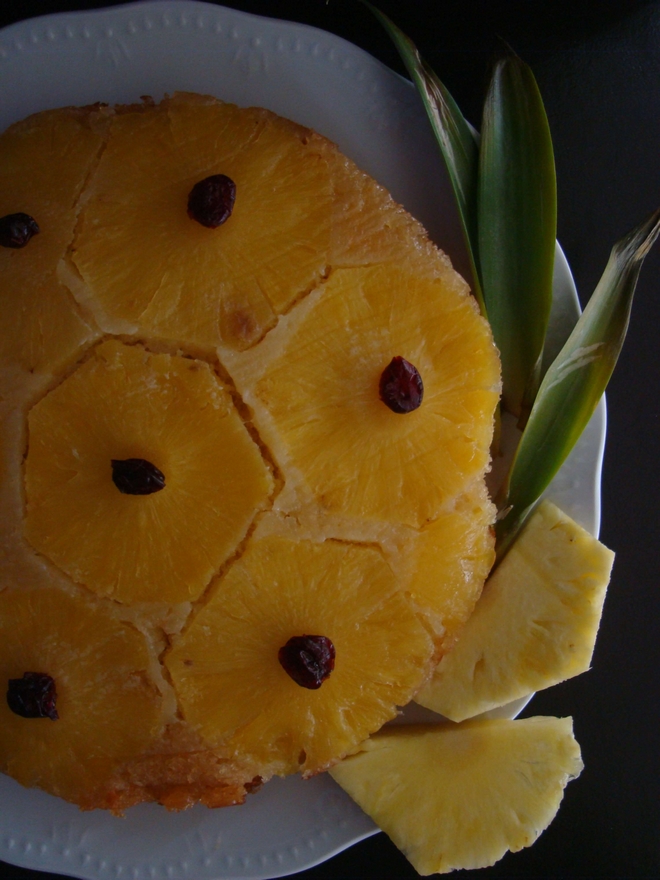 Να σας πω, εγώ το αρχικό καραμέλωμα δεν το έκανα γιατί βαρέθηκα και έχω να σας πως ότι βγήκε μια χαρά το γλυκάκι, δηλαδή έβαλα στο αντικολλητικό χαρτί βούτυρο μπόλικη ζάχαρη και έβαλα κατευθείαν τις φέτες του ανανά… βέβαια το έψησα λίγο παραπάνω… αλλά επειδή έγινε πολύ καλό σίγουρα την επόμενη φορά θα το φτιάξω με τον τρόπο που λέει ακριβώς η συνταγή…