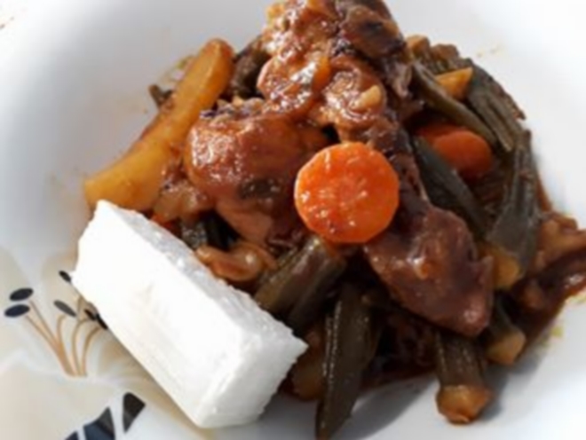 Μπάμιες φρέσκιες με μπούτια κότας και μπαλσάμικο