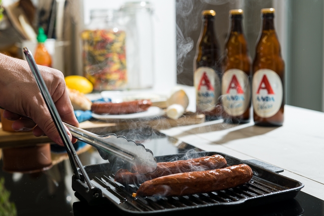 Σε ένα καυτό σχαροτήγανο ή ψησταριά, ψήνουμε τα λουκάνικα ακολουθώντας τις οδηγίες που αναγράφονται στη συσκευασία.